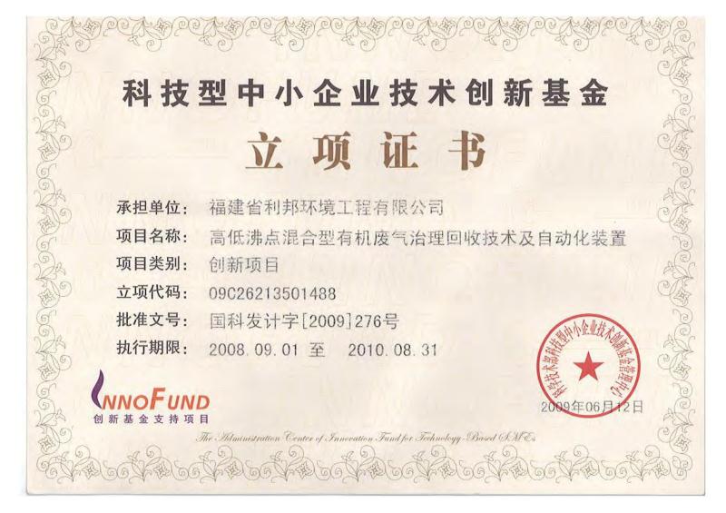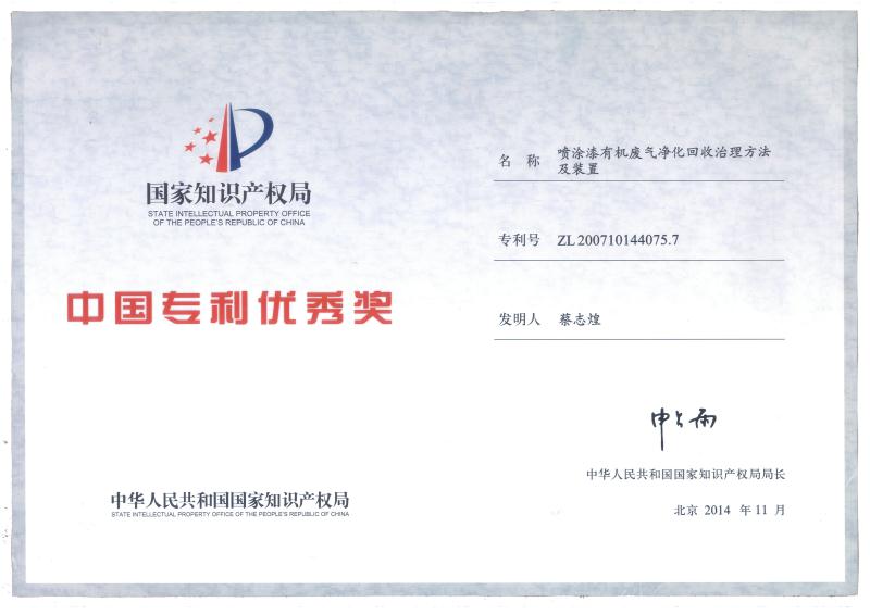 福建省科技型企業(yè)、福建省創(chuàng)新性企業(yè)、福建省首批科技小巨人、福建省“專精特新”專業(yè)化企業(yè),擁有企業(yè)研發(fā)中心、福建省有機(jī)廢氣凈化設(shè)備工程技術(shù)研發(fā)中心;公司產(chǎn)品獲得科技部、環(huán)保部、商務(wù)部、國(guó)家質(zhì)量監(jiān)督總局頒發(fā)的“國(guó)家重點(diǎn)新產(chǎn)品”證書,“中低濃度揮發(fā)性有機(jī)物回收凈化裝備”被列入《國(guó)家鼓勵(lì)發(fā)展的重大環(huán)保技術(shù)裝備目錄(2017年版)》;公司核心發(fā)明專利分別獲得了中國(guó)專利獎(jiǎng)優(yōu)秀獎(jiǎng)、福建省專利獎(jiǎng)二等獎(jiǎng)等專利獎(jiǎng)項(xiàng),其中兩個(gè)核心技術(shù)分別獲得福建省技術(shù)發(fā)明獎(jiǎng)二等獎(jiǎng)、福建省科學(xué)技術(shù)進(jìn)步獎(jiǎng)二等獎(jiǎng);公司